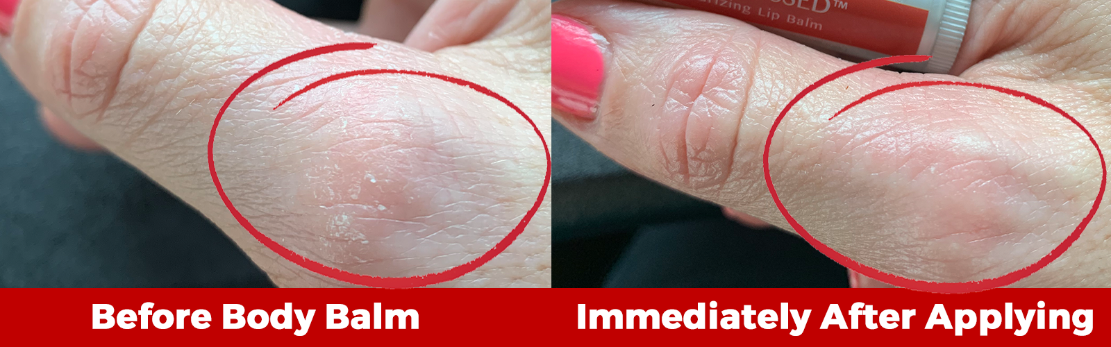 When one of our team members (Kirsten) started struggling with painful eczema on her hands, she tried her Simply Kissed™ lip balm to see if it would help ease the itch and sting on her bleeding and cracking skin.