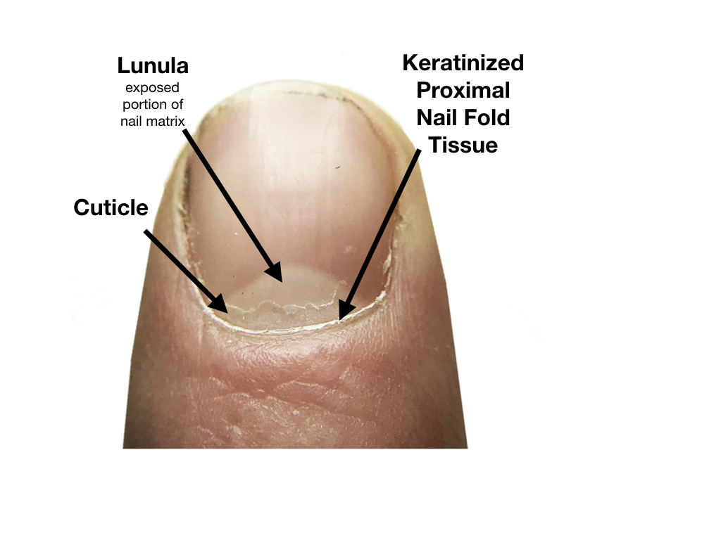 The tight band of skin at the base of your nail plate is NOT the cuticle. That band of skin is called the “Keratinized Proximal Nail Fold Tissue” or “nail fold."